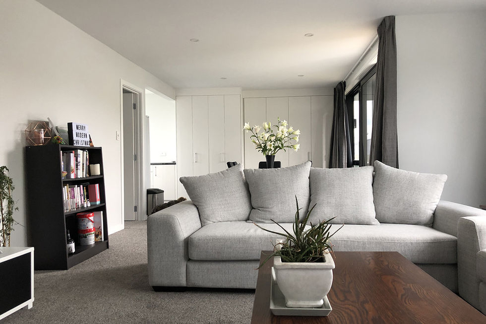 Stage one of the renovation included moving the laundry from the basement into the open plan kitchen and living areas (hiding the appliances behind cabinetry), removing the hot water cylinder for gas and also an old fire place, opening up the living and dining room areas, installing a beam and demolishing a second obsolete fireplace in the lounge, upgrading the bathroom and toilet whilst adding a wash basin in the toilet. Luckily the kitchen had previously been upgraded so she only needed a minor cosmetic upgrade there.